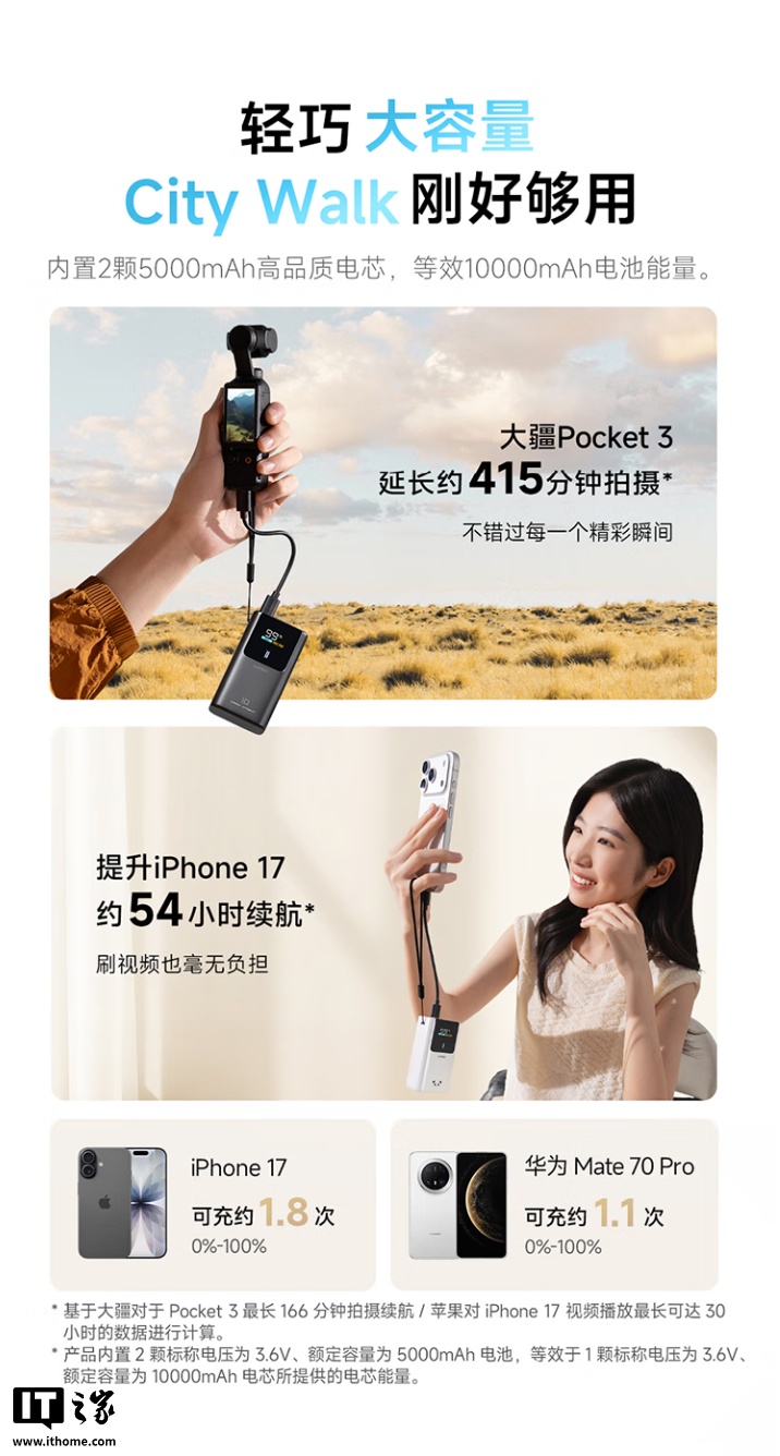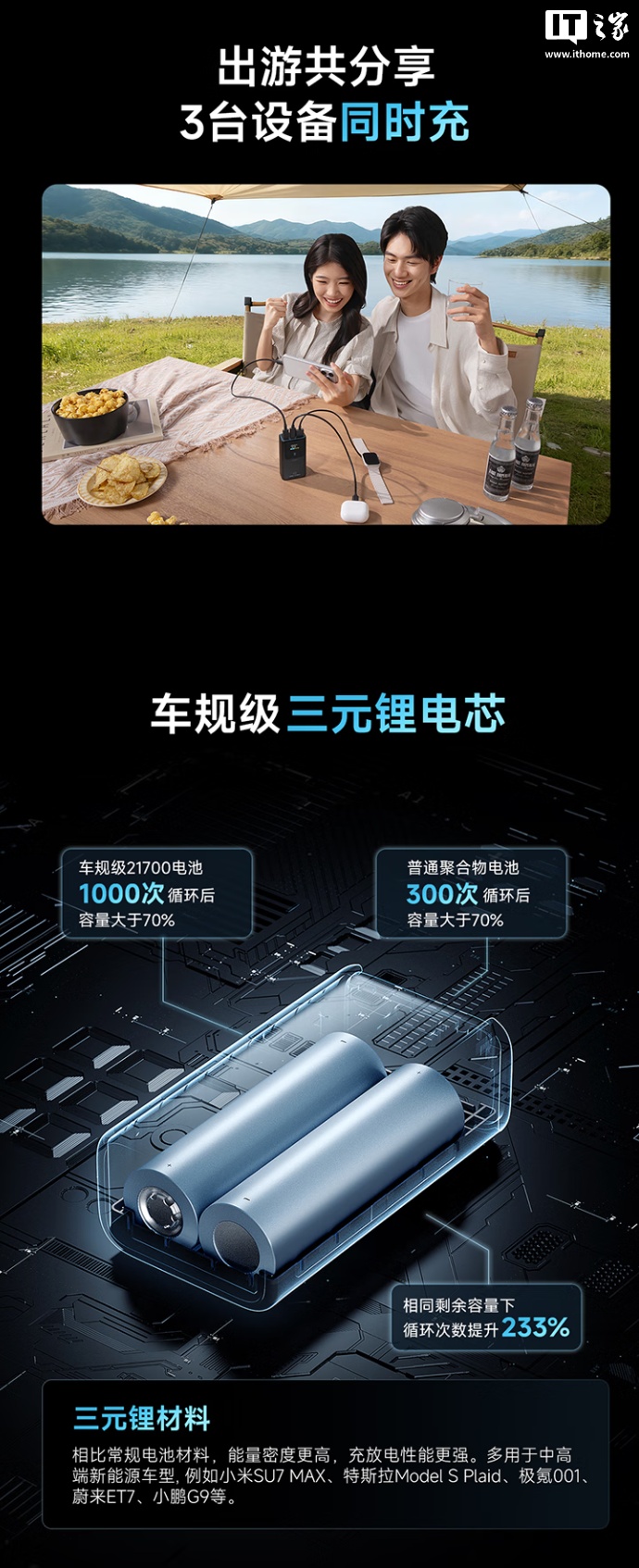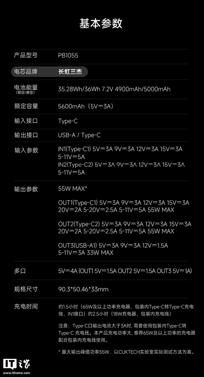 据介绍,这款充电宝采用轻巧设计,重量 217 克,与常规手机相当,相比 10 号、10 号 Plus 更加便携,内置两颗长虹三杰 21700 电池,容量 10000mAh,额定容量 5600mAh。